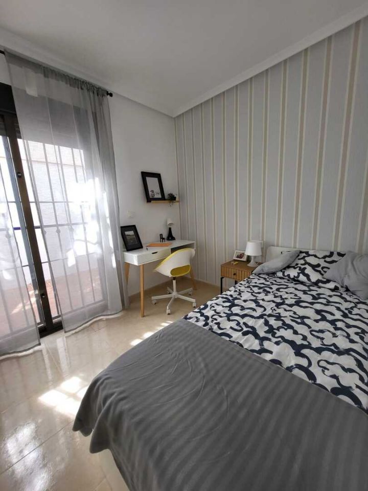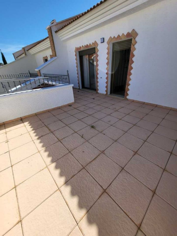Entra en esta encantadora vivienda de dos plantas, totalmente reformada, y prepárate para ser cautivado! Con una espaciosa superficie útil de 82 m² (102 m² construidos), esta propiedad ofrece confort y estilo en su diseño cuidadosamente pensado. Imagina tomar el sol mediterráneo en tu solárium privado o disfrutar de un café tranquilo por la mañana en el acogedor porche. El amplio jardín delantero de 82 m² proporciona un delicioso oasis al aire libre para relajarse, entretenerse o incluso para un poco de jardinería. En el interior, encontrarás un salón-comedor  diseñado, una cocina moderna, tres acogedoras habitaciones y tres elegantes baños completamente reformados. Cada detalle ha sido meticulosamente actualizado, asegurando una experiencia contemporánea y lista para entrar a vivir. La practicidad se une a la comodidad con un trastero grande y un garaje privado. Además, tendrás acceso a una refrescante piscina comunitaria, perfecta para esos cálidos días españoles. Todo esto está ubicado en una zona privilegiada de San Miguel de Salinas, cerca de todos los servicios esenciales. Ibi vivienda: 218€, IBI: garaje y trastero: 70€. Comunidad 42,82€ al año y 10€ garaje