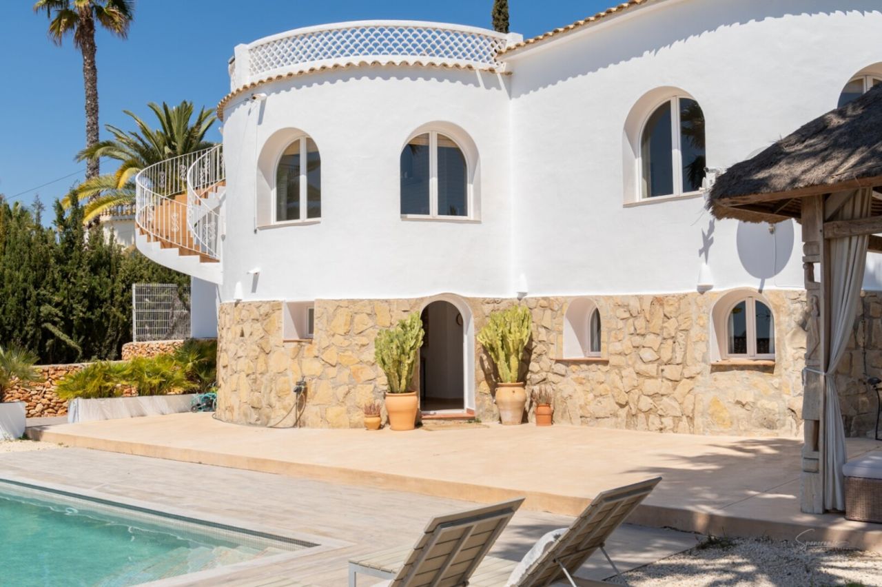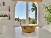 This four-bedroom villa in Benissa Costa is a showcase of modern Mediterranean elegance, seamlessly blending traditional Spanish architecture with an Ibizan boho style. Impeccably presented both inside and out, the property boasts sea views and is just a few minutes' drive from beautiful coves, beaches and amenities. Distributed over two levels, the villa offers wonderful sea views. The entrance hall leads to an open-plan living space, which features a cosy lounge with a fireplace and a formal dining room. An archway leads to a separate modern kitchen fitted with integrated appliances, the kitchen includes a casual dining area with a door opening onto an external staircase, leading to a roof terrace. Accommodation includes four bedrooms, including the master suite, plus three modern bathrooms with walk-in showers. Each room reflects an immaculate attention to detail in the interior design and décor, offering a bright, airy and visually soothing atmosphere. Outside, the property continues to impress with a modern swimming pool with easily accessible steps, surrounded by a spacious sun terrace and a cabana style chill-out area. On the other side of the villa, there is a patio style space with a summer dining area and open views, all set within low maintenance gardens.