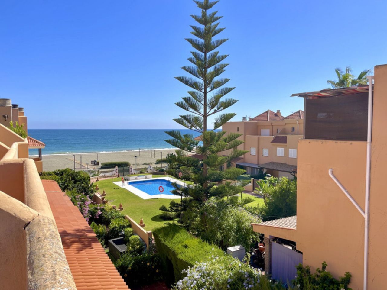 casaresTento městský dům v blízkosti pláže Marina v Casares je skvělou příležitostí na pobřeží Casares Costa. Toto je super lokalita pouhých 5 metrů chůze od písečné pláže a oblíbených plážových barů. Krátkou 5minutovou procházkou po promenádě se dostanete do živé pobřežní vesnice Sabinillas. Je zde široký výběr supermarketů, obchodů, tapas barů a restaurací. Dalších 10 minut chůze vás zavede do přístavu La Duquesa. Marina de Casares je dobře udržovaný komplex s uzavřenými zahradami a společným bazénem. Městský dům Marina de Casares je prostorná rohová nemovitost se soukromou zahradou, která byla pečlivě udržována současným majitelem. K nemovitosti náleží podzemní parkovací stání s přímým vstupem do ulice. Atraktivní vstupní chodba s úložným prostorem. Odtud se vchází do chodby s dalším úložným prostorem a toaletou pro hosty. Vlevo je velká plně zařízená a vybavená kuchyň. Schodiště vede do velkého obývacího pokoje a jídelny. Opět je zde díky rohovému umístění dostatek přirozeného světla. Balkonové dveře vedou do velké soukromé zahrady. Zahradní terasa je orientována na jihozápad, vyžaduje minimální údržbu a dostatek slunce. Je zde skvělé místo pro grilování. Navíc je zde přímý vstup do bazénu. Přízemí domu se skládá ze dvou úrovní se dvěma ložnicemi pro hosty a hlavní ložnicí, všechny dvoulůžkové pokoje s vestavěnými skříněmi. Hlavní ložnice má vlastní koupelnu a je zde také rodinná koupelna. Jedna z ložnic pro hosty má výhled na moře. Další schodiště vede do solária. Přístup na nádhernou terasu o rozloze 30 m2, kde si můžete užívat slunce po celý den a výhled na moře a do zahrad. Oblast Marina de Casares je ideálním místem jak pro rodinnou dovolenou, tak pro trvalejší bydlení. Závěrem lze říci, že tento dům se nachází ve skvělém komplexu a na skvělém místě. Má snadný přístup (plochý) na pláž a vynikající potenciál pronájmu.