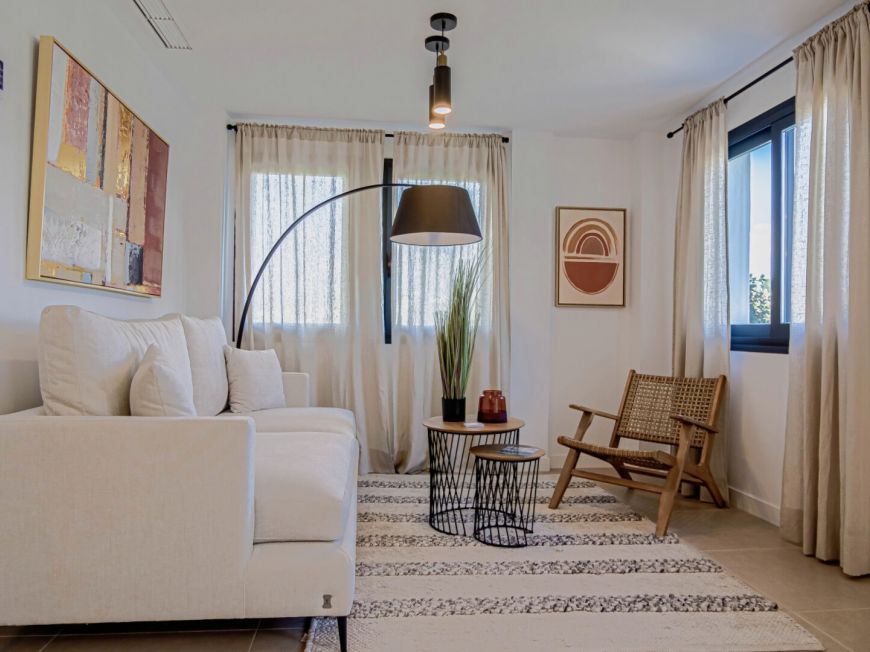 Tento exkluzivní rezidenční komplex 47 městských domů v El Paraiso, Estepona se nachází v srdci Costa del Sol, vedle El Campanario Golf & Country House. Jeho výhodná poloha a andaluská architektura dodávají domům jedinečný charakter a poskytují nádherné výhledy a přirozené světlo. Řadové domy se 3 ložnicemi zahrnují přední verandu, sluneční terasu s pergolou, soukromou zahradu a sklep a dvě podzemní garážová stání. Součástí komplexu je také společný bazén a krásně upravené zahrady. Ceny řadových domů se 3 ložnicemi od 151 m2 se pohybují od 389 000 do 499 000 EUR, což z nich dělá vynikající investici do pohodlného bydlení na pobřeží Costa del Sol. Tento rezidenční komplex se nachází v pěší vzdálenosti od jednoho ze 70 golfových hřišť na pobřeží Costa del Sol. Má také výhodnou polohu v blízkosti Puerto Banus, Marbella a Estepona a pouhých 50 minut od letiště Malaga. Nenechte si ujít šanci na útulné ubytování na skvělém místě!