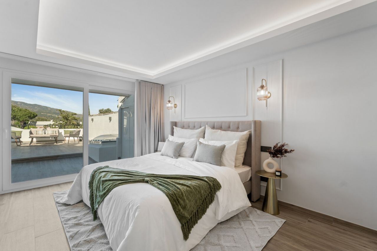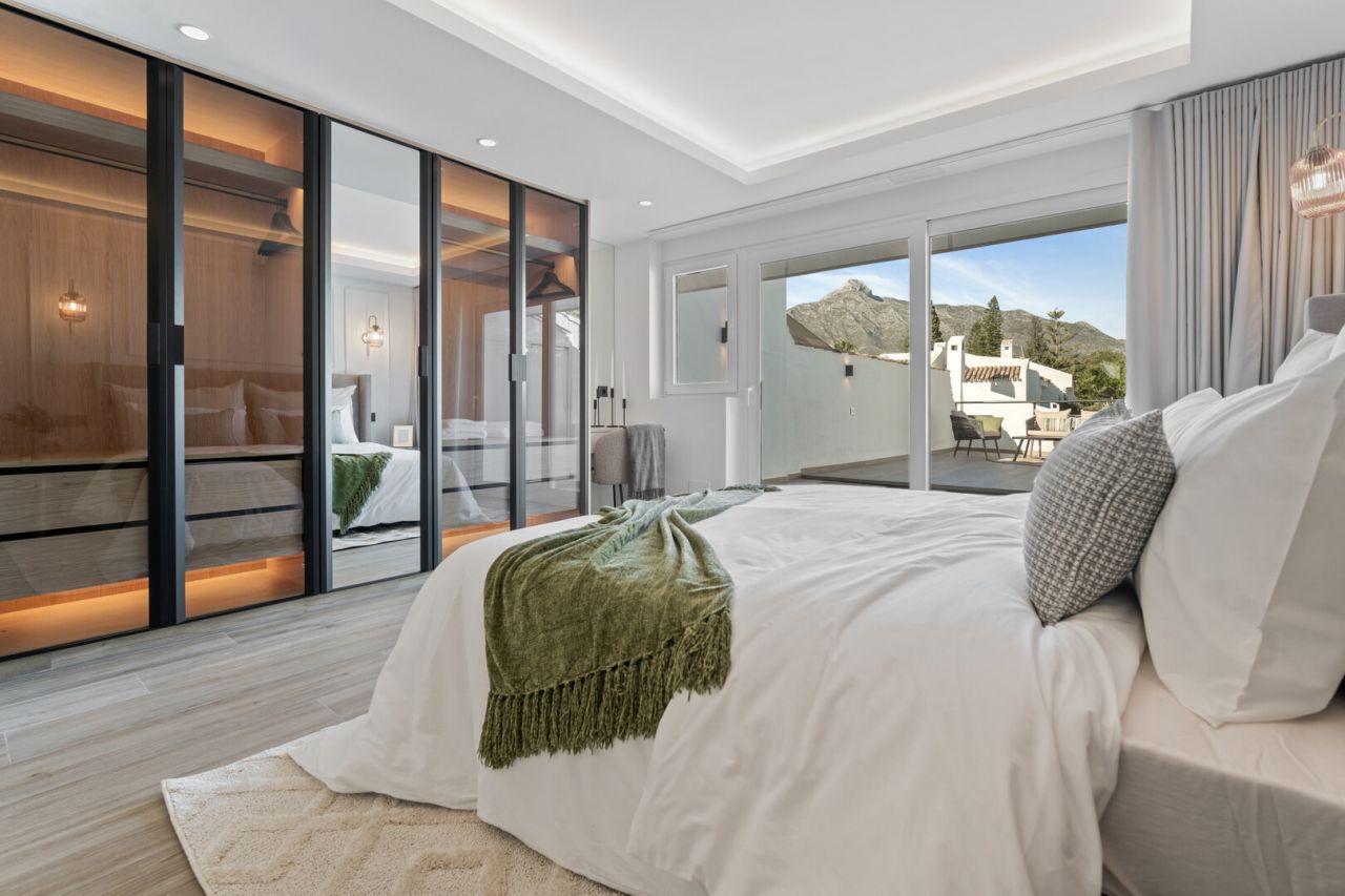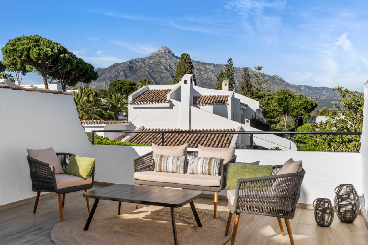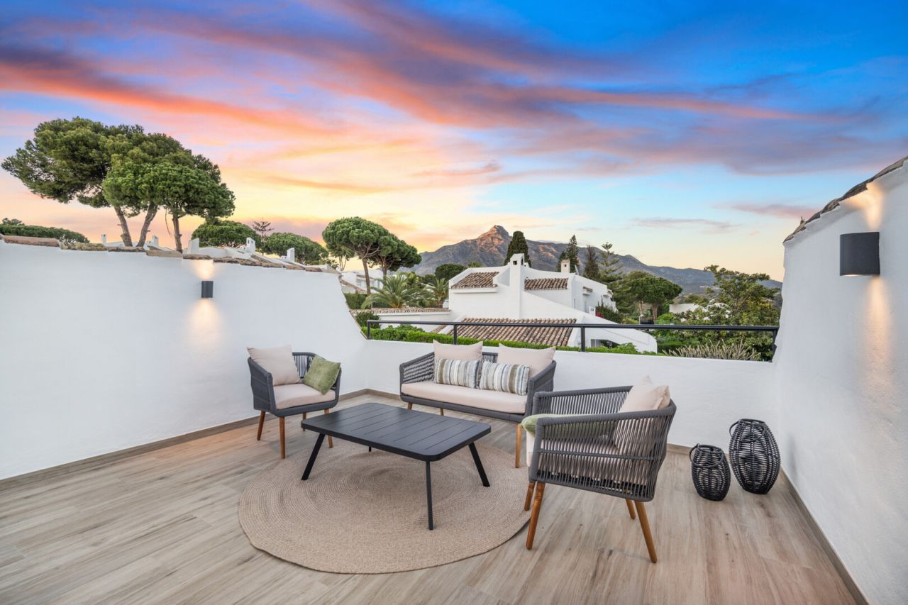 Nádherně zrekonstruovaný městský dům se nachází v srdci Nueva Andalucia, v oblasti Aloha. Tato elegantní nemovitost, postavená v roce 1983 a stylově zrekonstruovaná v roce 2023, nabízí 157 metrů čtverečních prostoru na dvou podlažích na pozemku o rozloze 240 metrů čtverečních. Cena je 1 295 000 eur, zahrnuje tři ložnice, tři koupelny a terasu 84 metrů čtverečních. Dům nachází rovnováhu mezi tradičním kouzlem a moderním vybavením, nachází se v uzavřené komunitě se společným bazénem. Jeho privilegovaná poloha umožňuje blízký přístup ke golfovému hřišti, restauraci a plážím. Dům je zařízen designovým nábytkem a spotřebiči Bosch a nabízí panoramatický výhled na horu La Concha. Tato nemovitost představuje výjimečnou příležitost užít si luxusní a pohodlné bydlení v Nueva Andalucia.
