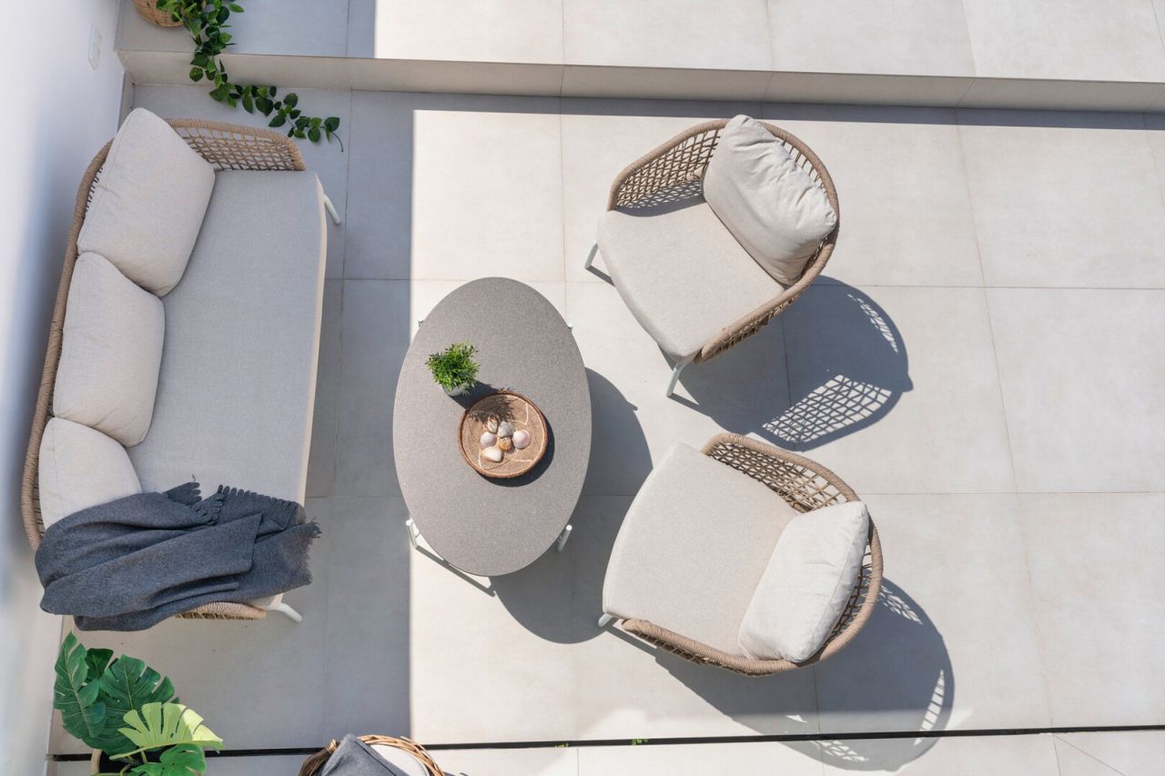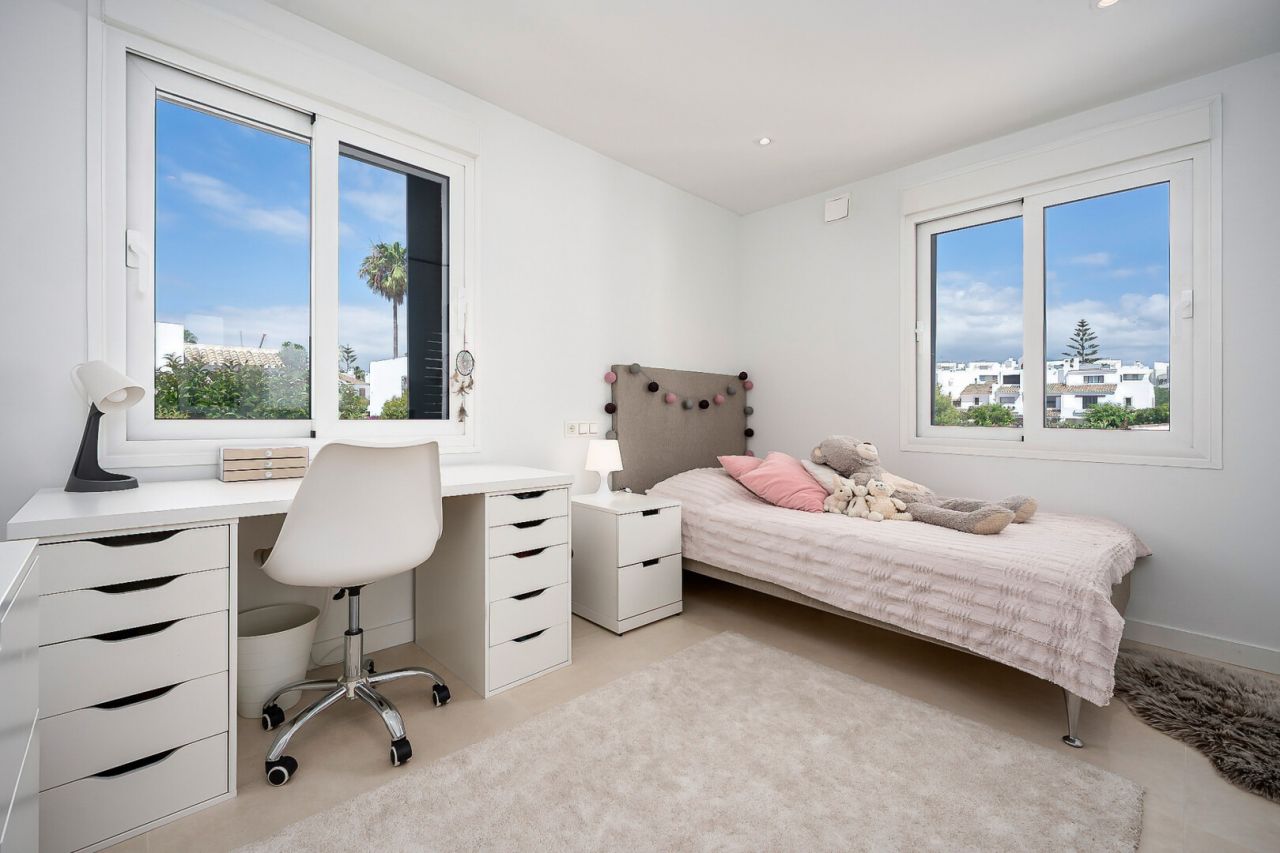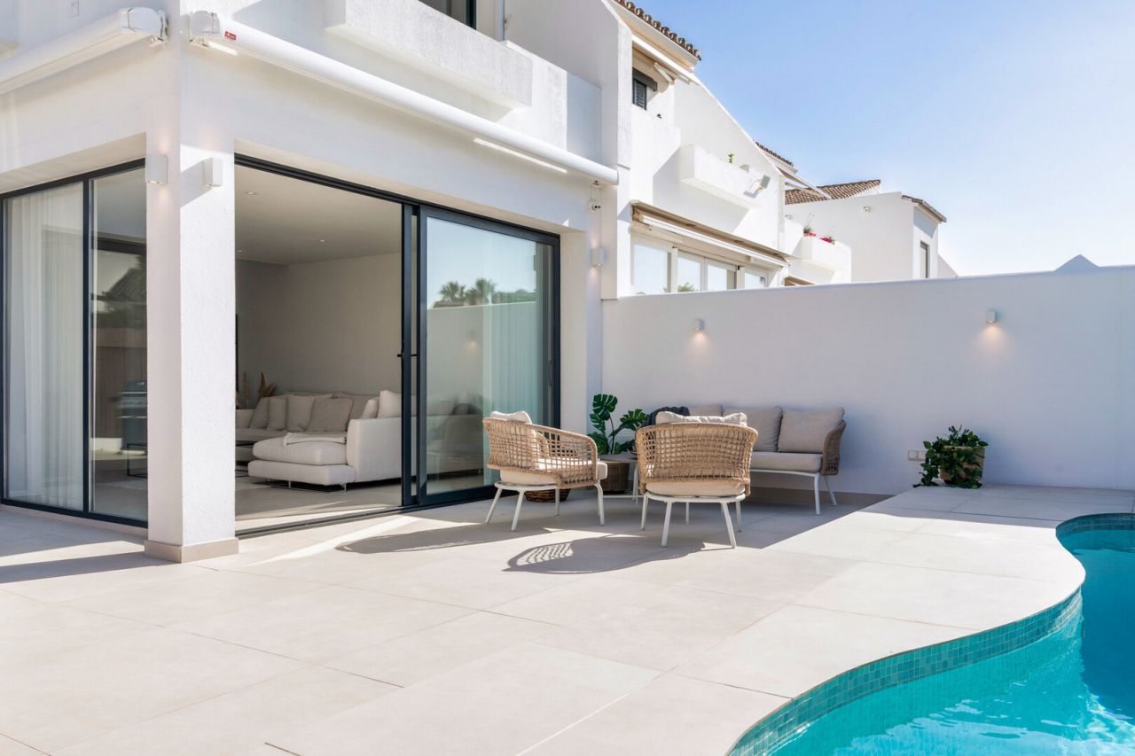 costa-del-solNa prodej elegantní rohový městský dům 4+kk v jedné z nejkrásnějších částí Marbelly - San Pedro. Tento dům se nachází v uzavřené komunitě a je obklopen řadou tradičních a současných stylů nemovitostí. Veškerá občanská vybavenost San Pedro, Puerto Banus, golfové údolí Nueva Andalucia, New Golden Mile of Estepona a centrum Marbelly jsou v docházkové vzdálenosti nebo krátké jízdy. Patří mezi ně písečné pláže, exkluzivní plážové kluby, restaurace, bary, obchody, supermarkety, značkové butiky, mezinárodní školy, tenisové kluby, golfová hřiště a mnoho dalšího. Na pozemku 235m2 se tyčí dvoupodlažní rohový řadový dům o celkové ploše 205m2, orientovaný na jih, poskytující lepší orientaci a nádherný výhled do zahrady. Nedávná rozsáhlá rekonstrukce dosáhla působivé kombinace skandinávského stylu, hřejivé útulnosti a moderního vybavení. Podlahové vytápění se rozprostírá po celém domě a vytváří útulnou atmosféru. Moderní kuchyně je vybavena špičkovými spotřebiči a vyznačuje se jemným povrchem. Svým plynulým přechodem do obývacího a jídelního prostoru se stává ideálním centrem rodinného života. Ve druhém patře jsou 4 klidné a prostorné ložnice, 3 moderní koupelny (včetně 2 en suite) a 30 metrů čtverečních terasy. Hlavní ložnice zaujme vlastní koupelnou a prostornou šatní skříní. V dobře udržované zahradě je soukromý bazén a útulný prostor pro stolování a odpočinek. Kromě toho je pro vaše pohodlí zahrnuto kryté parkoviště. Tento luxusní městský dům, který nedávno prošel vysoce kvalitní rekonstrukcí, je nabízen ve výborném stavu a obohacuje váš život o moderní zážitek. Je vybaven Wi-Fi, prosklenými dveřmi, dvojskly, vestavěnými skříněmi a dalšími výhodami. Klimatizace a vyhřívané podlahy ve všech pokojích vytvářejí útulnou atmosféru a jsou tak ideálním místem pro relaxaci a rodinné chvíle. Nenechte si ujít tuto jedinečnou příležitost žít v moderním a stylovém domě v Marbelle, jedné z nejžádanějších oblastí Středomoří!