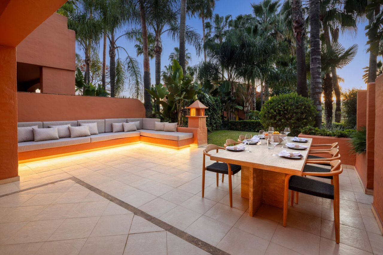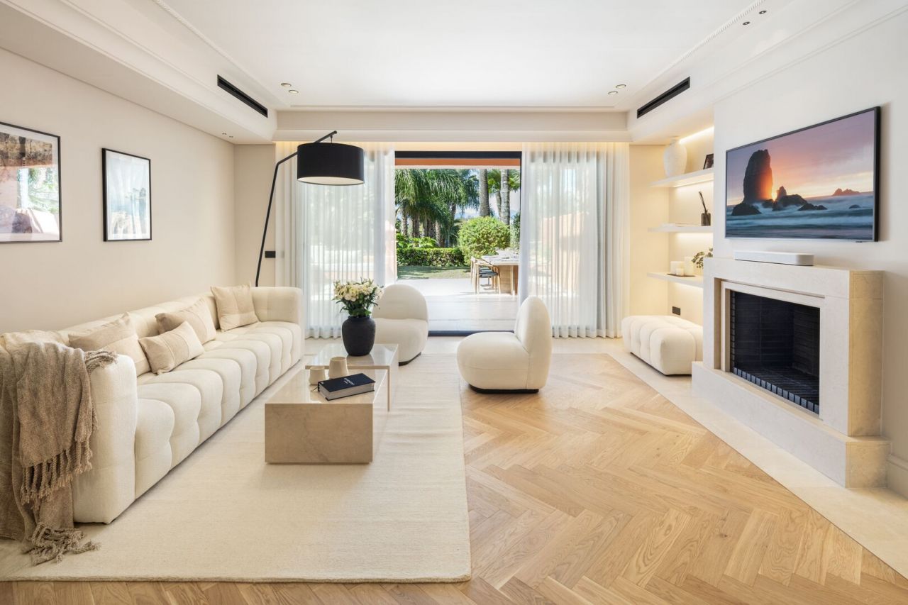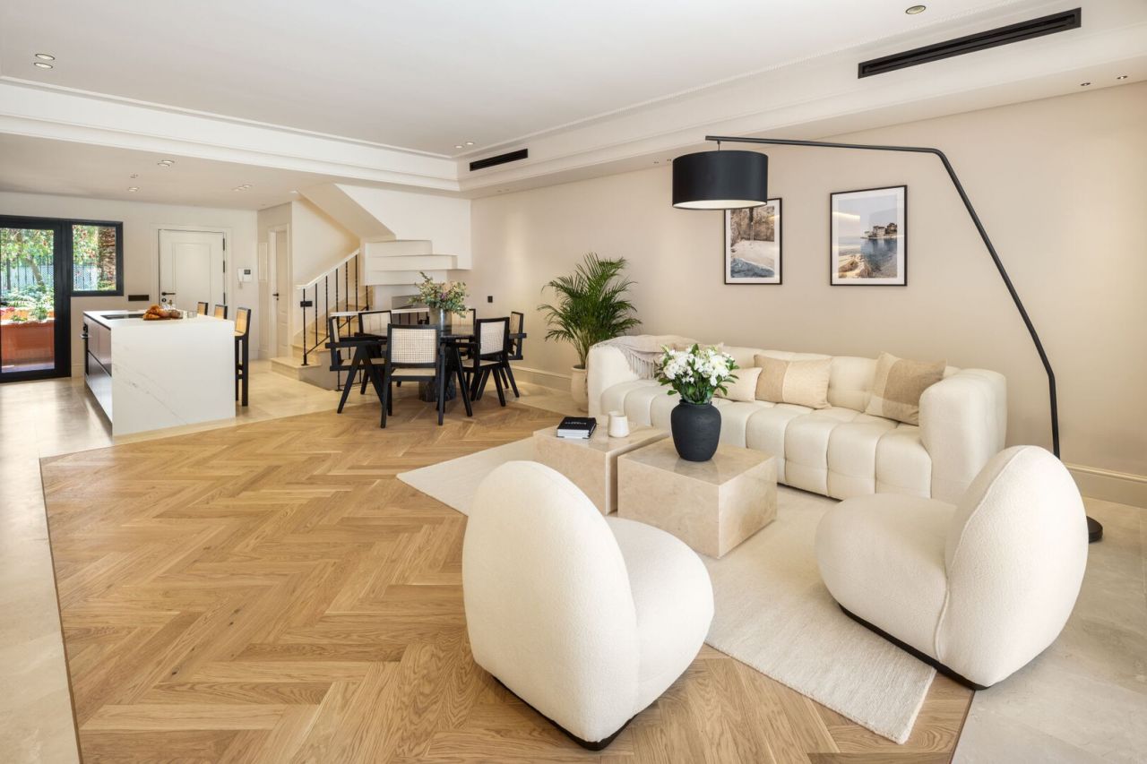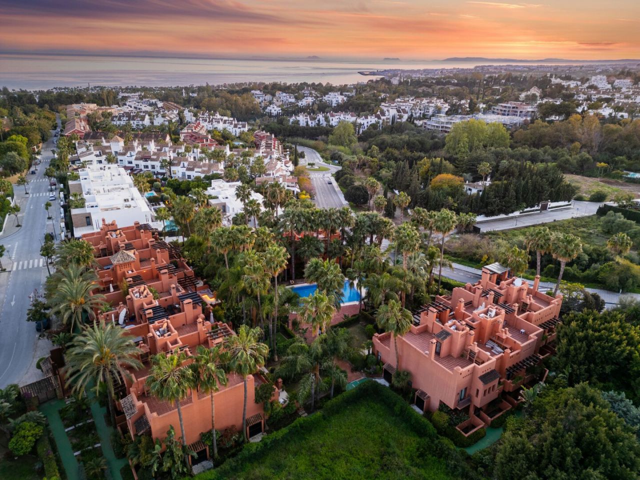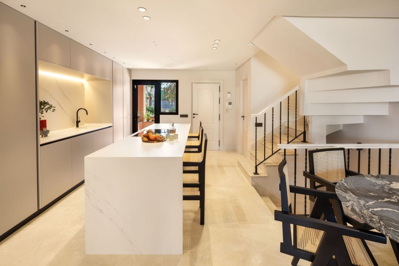 costa-del-solJsme rádi, že vám můžeme představit tento nádherný městský dům nacházející se v prestižní oblasti v úctyhodné uzavřené komunitě na Zlaté míli v Marbelle. Terasa nabízí úchvatný výhled do okolí a poskytuje odlehlé místo, kde si můžete vychutnat úžasný výhled do okolí. Uvnitř je interiér nádherně zdobený nádherným nábytkem a pečlivým důrazem na detail. Otevřený půdorys v přízemí zahrnuje plně vybavenou moderní kuchyni se špičkovými spotřebiči a jemnými povrchovými úpravami. Prostorný prostor pro hosty je stylově zařízen v neutrálních barvách. Městský dům má 4 úžasné ložnice, z nichž každá je nádherně zdobená. Umístění této vily v uzavřeném hlídaném komplexu zaručuje vysokou úroveň soukromí a bezpečnosti. Obyvatelé si také mohou užít komunitní bazén zasazený mezi nádherné zahrady. Komplex je jen pár minut chůze od nedotčených pláží Marbelly.