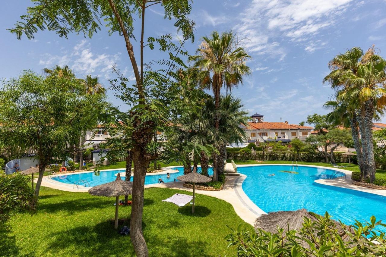Tento krásný zařízený řadový dům je na prodej. Nabízí 2 prostorné ložnice, 1 koupelnu, 1 toaletu pro hosty, samostatnou kuchyň, velký obývací pokoj s jídelnou a velkorysou terasu, ideální pro užívání si středomořského klimatu. Nachází se v dobře udržované rezidenční čtvrti, obklopené zelení a jen pár minut od pláže. Ideální jako celoroční bydlení nebo rekreační útočiště.