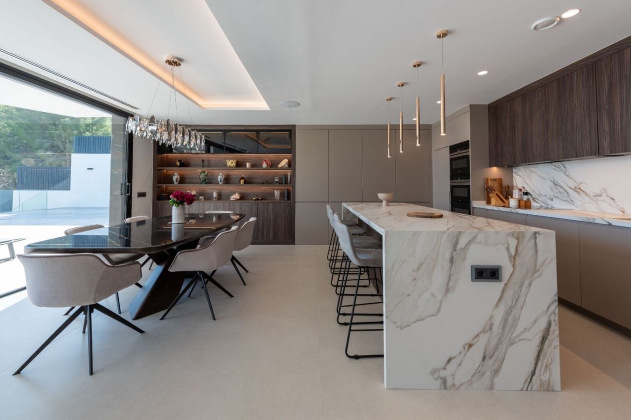 Velkolepá nedávno postavená vila s nádherným výhledem na moře, která se nachází v jedné z nejvyhledávanějších oblastí Costa de Blanca. Dům je postaven na 4 podlažích s 522m2 zastavěné plochy a na pozemku 1505m2. Tato fantastická vila nabízí v hlavní části velkolepou kuchyni nejnovějšího designu integrovanou s jídelnou, což z ní dělá nádherný prostor pro zábavu s rodinou, obývací pokoj je oddělen působivým krbem, který se spojuje na obou stranách, odkud se dostanete na velkou terasu, relaxační prostor u bazénu, gril a vynikající zahradu; V patře jsou 4 velké ložnice s integrovanými skříněmi a jejich velkými okny pro nádherný výhled, 4 en-suite koupelny, nahoře najdeme hlavní vchod domu, garáž, parkoviště a kam se do domu dostaneme výtahem nebo po schodech s LED světly; Ve spodní části najdeme posilovnu, Spa, jacuzzi, saunu, vyhřívaný bazén, bar se vším, co si můžete užít s přáteli a rodinou, 2 koupelny pro hosty, kuchyň se vším pro ty nejodvážnější na vaření pečiva. Oblast kina atd. a mnoho dalších doplňků!!